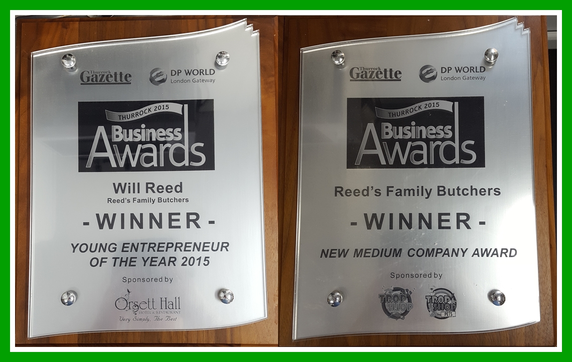 We are a multiple award-winning butchers shop with awards from Thurrock Business awards for “Young Entrepreneur of the Year”, “Best Medium Company of the Year”, and “Businessman of the Year”.